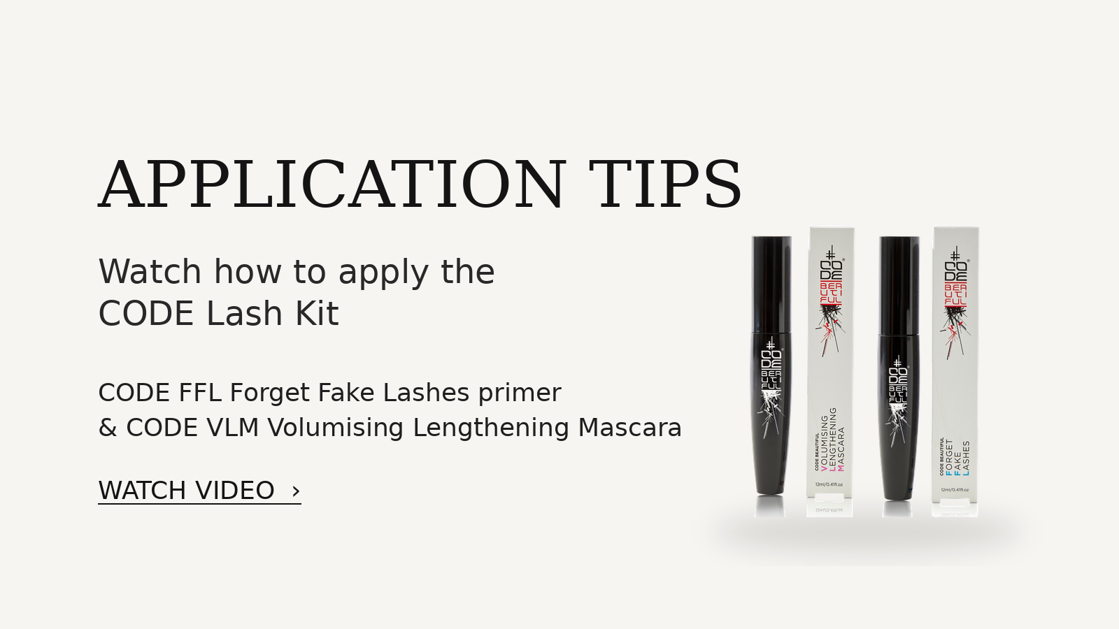 Together, CODE FFL and CODE VLM create the CODE Lash Kit — two simple steps for longer, fuller, beautifully defined lashes.